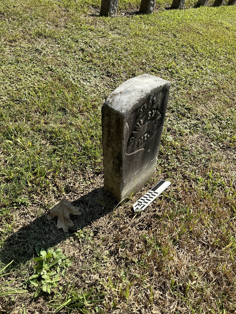 Extra image of historic upright marble headstone with recessed shield face.