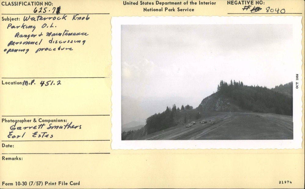 Maintenance staff discussing parking procedure at Waterrock Knob Parking Overlook
