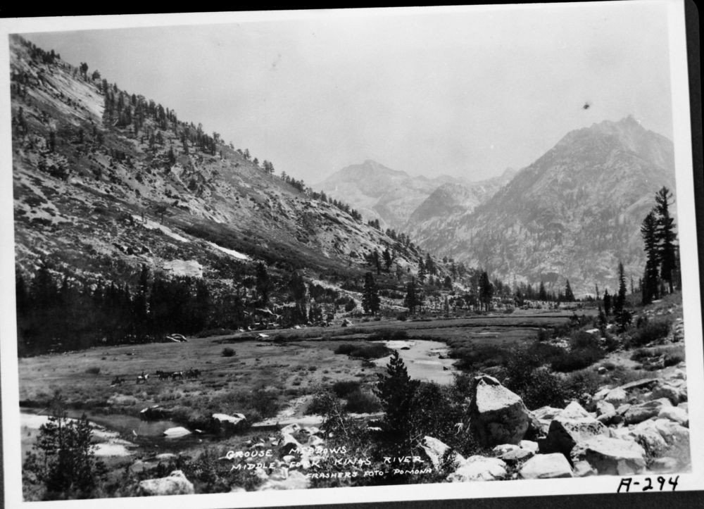 Frashers Foto, Unknown Date, Grouse Meadow, KCNP, Le Conte Canyon. Middle Forks Kings River. Ca 1918, copied from the book "Rainbow Trail".