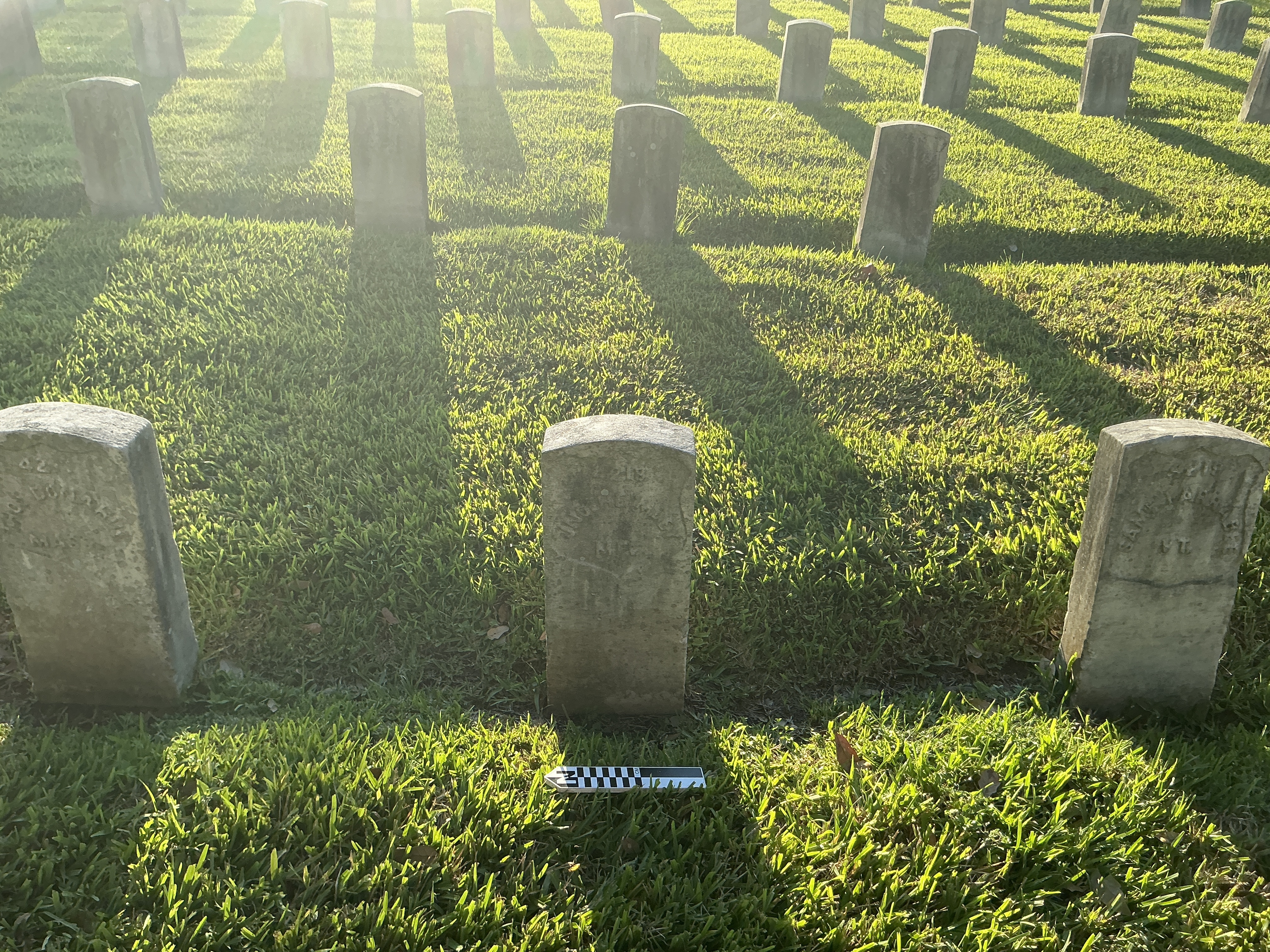 Headstone at Chalmette National Cemetery. Grave ID: 4218. Located at Section 53, Row 2, Site Number 10. Photo taken as part of the 2024 condition assessment and inventory.