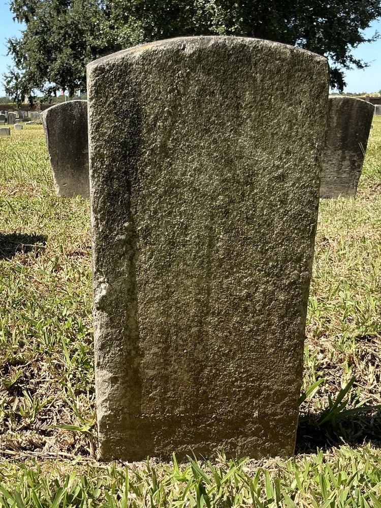 Back of historic upright marble headstone with recessed shield with recessed lettering face.