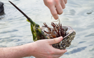 Hands Untangling Fishing Line From The Legs of a Horseshoe Crab