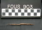 Metal awls like this one were brought to America by Europeans, who had been using them since the Iron Age. In the Western Hemisphere, American Indians had also used awls to puncture holes into tough animal hides to make clothing and teepees; these awls however were made of bone. Once metal awls became available, American Indians adopted them for their sewing needs.