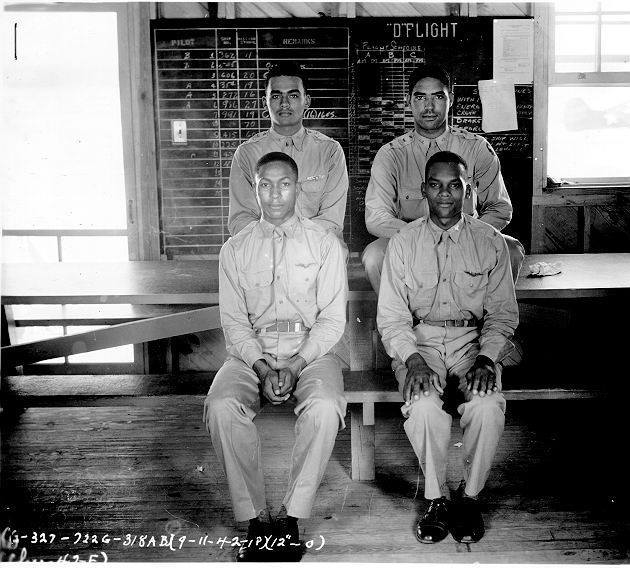 On May 20, 1942 the third class of African American pilots graduated from flying training at Tuskegee Army Air Field. Pictured is the class of four, SE-42-E. Pictured: Lieutenants Lee Rayford, George L. Knox, James B. Knighton and Sherman Rose.