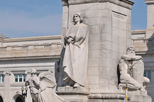 Detail of the fountain in front of Union Station. In 1907, Congress authorized the erection of a monument to Christopher Columbus in the city, and the plaza was designed as a space for public gatherings.