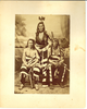 LIBI_00019_00178; This item is a card-mounted albumen photograph of three Sioux warriors, two seated and one standing. The subjects are holding two United States Cavalry sabers and a Sharp's carbine. The full view photograph is 5 1/4 x 7 1/4" ( 8 x 10" mounted) and was produced circa 1879. The photograph is attributable to David F. Barry. Some foxing is evident on both the front and the verso. On the front, a watermark is positioned on the right side of the photograph. On the verso, a handwritten notation in pencil reads: "These are Sioux warriors such as General Custer fought. They wear no leggings or blankets in a fight. They have only the breach clout fastened about their loins/No. 5." Note: "Pkg 1/Custer Chest" handwritten on verso.; PRINT, PHOTOGRAPHIC [Card photograph]; Courtesy of the National Park Service, Little Bighorn Battlefield National Monument, LIBI_00019_00178, D. F. Barry, "Three Sioux Warriors with U.S. Cavalry Sabers and a Sharp's Carbine," circa 1879