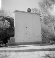 The amphitheater screen and projector at the South Campground. ; ZION Museum and Archives Image 005.01.01-8of9 ; ZION 15933