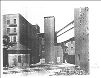 This is a historic view of the Rolling Dam gatehouse site. The gatehouse is in the lower left hand corner of the photograph. The mill building seen beyond the gatehouse has long since vanished.