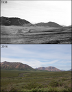 A photo pair showing No apparent changes at Sable Pass: 1938-2016