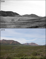 Photos and photo pairs are pre-approved for educational use ONLY. To use them in educational products, credit them the same way as they are credited on the website, Photo Credit: Original photographer: Ray B. Dame (Ickes Collection, Anchorage Museum at Rasmuson Center); Rephoto photographer: Jedediah Brodie. For any other use beyond education, contact Denali National Park and Preserve for additional copyright information on specific images of interest.