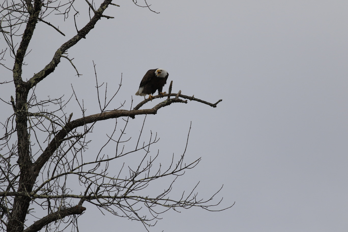 Bald eagle perched on tree near confluence of Lackawaxen and Upper Delaware Rivers in Lackawaxen, PA