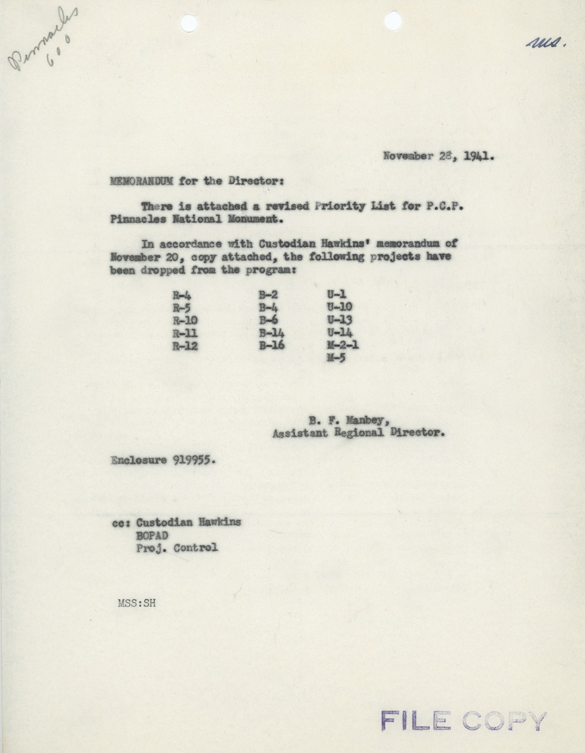 Project Construction Program Memorandum, Revised and Cancelled CCC Projects