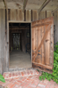 Exterior view of front door to Cherokee Cabin at Cherokee Plantation.