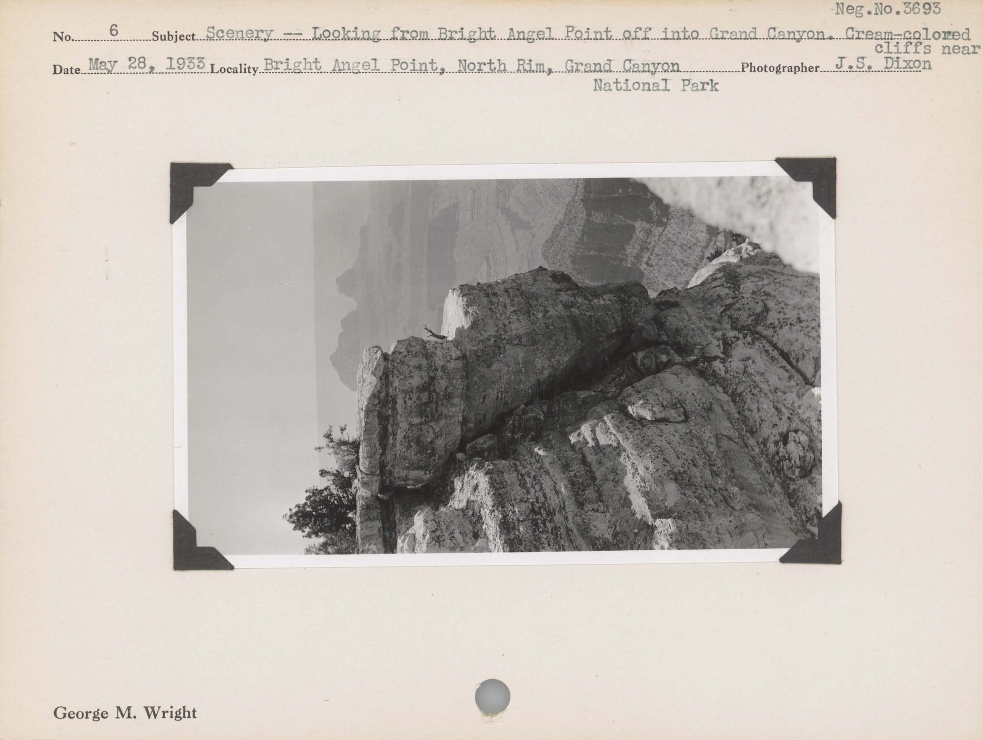 Scenery: Looking from Bright Angel Point off into Grand Canyon. Cream-colored cliffs near. Negative #: 3693. Locality: Bright Angel Point, North Rim, Grand Canyon National Park.