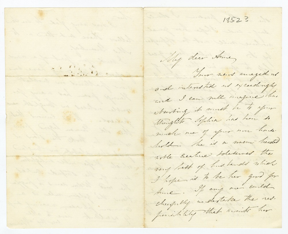 Your news amazed us and interested us exceedingly and I can well imagine how absorbing it must be to your thoughts Sophia has been so much one of your own household. She is a warm-hearted noble creature & deserves the very best of husbands which I hope is to be her good fortune. If any one could cheerfully undertake the responsibility that awaits her [p. 2] she is the person I should say – and I hope her genial nature will not be oppressed by it. She will be a great loss to you in the way of frequent & long visits & I deeply sympathise with you in that for I know what a comfort it has been to have her always ready & willing to come at any needed moment.