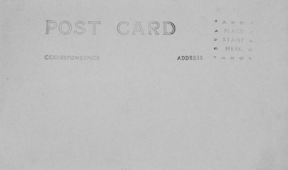 Reverse side of a post card, stamped writing reads "Post Card," "Correspondence," and "Address." Stamp placement area in top right corner.