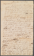 On front of document: “Waterloo 2mo 21st 1824 Respected Friends D. Merritt & Son I receiv’d yours of the 13th Instant in due season the contents of which I was some what surprised at I immediately went to see Capt Rusco who appeared to be very much surprised He stated to me that he did not go to Schenectady with the Boat but hired a Capt Parsons to go with it. Rusco and myself went to see Capt Parsons who stated that he got froze in a few miles above Schenectady but after a few days got to Schenectady with the Boat he then went to D W & Co and while at their Store saw a waggon loading with empty Bags Marked D. Merritt & Son he told D W & Co the wheat was yours and they took off bags enough to hold the wheat which was put in your bags except about 15 Bush which was a little wet they spread that in the loft and promised to have it Spread untill it got dry. he got short of Cash and Sold 31 Bus to pay expenses which Rusco says he will pay for. Parsons says D W & Co promise to Send the wheat to you the next day. he says he told them if they would not send it the next" On back of document: "day he would stay and attend to it himself they assured him they would attend to it and he came home. Yours of the 18th is also at hand and contents noticed. as respects the 1200 Bus wheat I have bot on my own a/c and had ground you state you will take with what I have bot for you. but as I want my Friends in N. York it will suit me better Not to draw on you but let it lay until I go to N.Y. which will be about 1st 4 mo then I will take your note at as long a time from that date as I can get it discounted. which will probably be 90 days with Interest from this time. which will no doubt suit you as well as a draft through the Bank of Geneva @ 4mo if so you may have it at the same rate I agreed to buy for you I remain your friend R.P. Hunt NB Please let me know if you take it as above also what D.W. &Co says in reply to Capt. Parsons. if his story is correct they D W & Co are more to blame[inserted] than him” "D. Merritt & Son Copy of a Letter 2-21 1824"