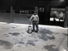 BW Photos of maintenance equipment. Man holding can over bottle. Sign in background reads: Horses for Rent. ; ZION Museum and Archives Image 700_04_12001 ; ZION 15933