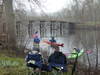 Visitors in kayaks and canoes awaiting start of event next to North Bridge