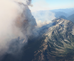 Wildfire burns along a high elevation ridge.