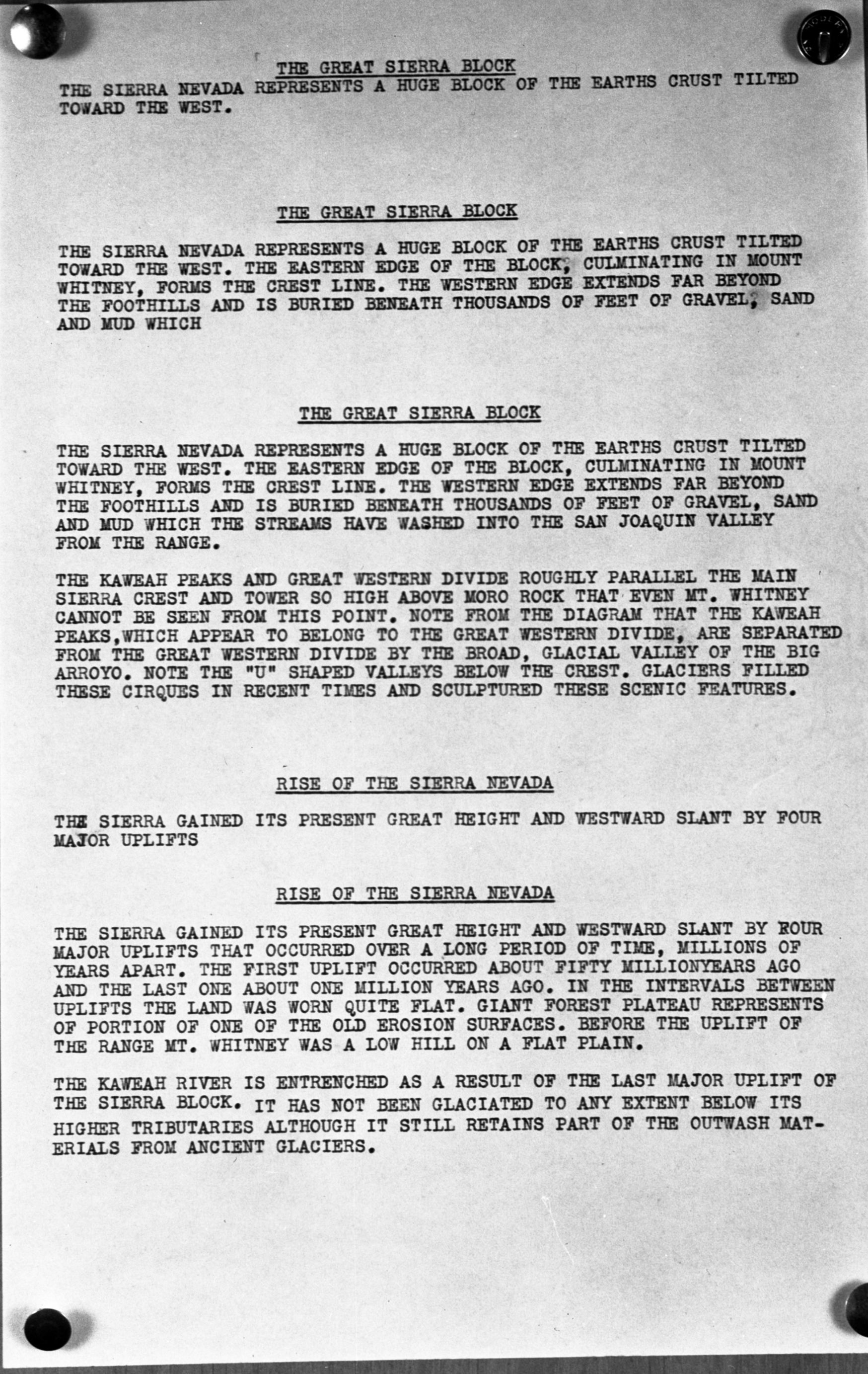 Frank Oberhansley, 450000, Sequoia Park, Misc. Geology, Text section of Sierra block from Matthes Book. Maps and Graphics