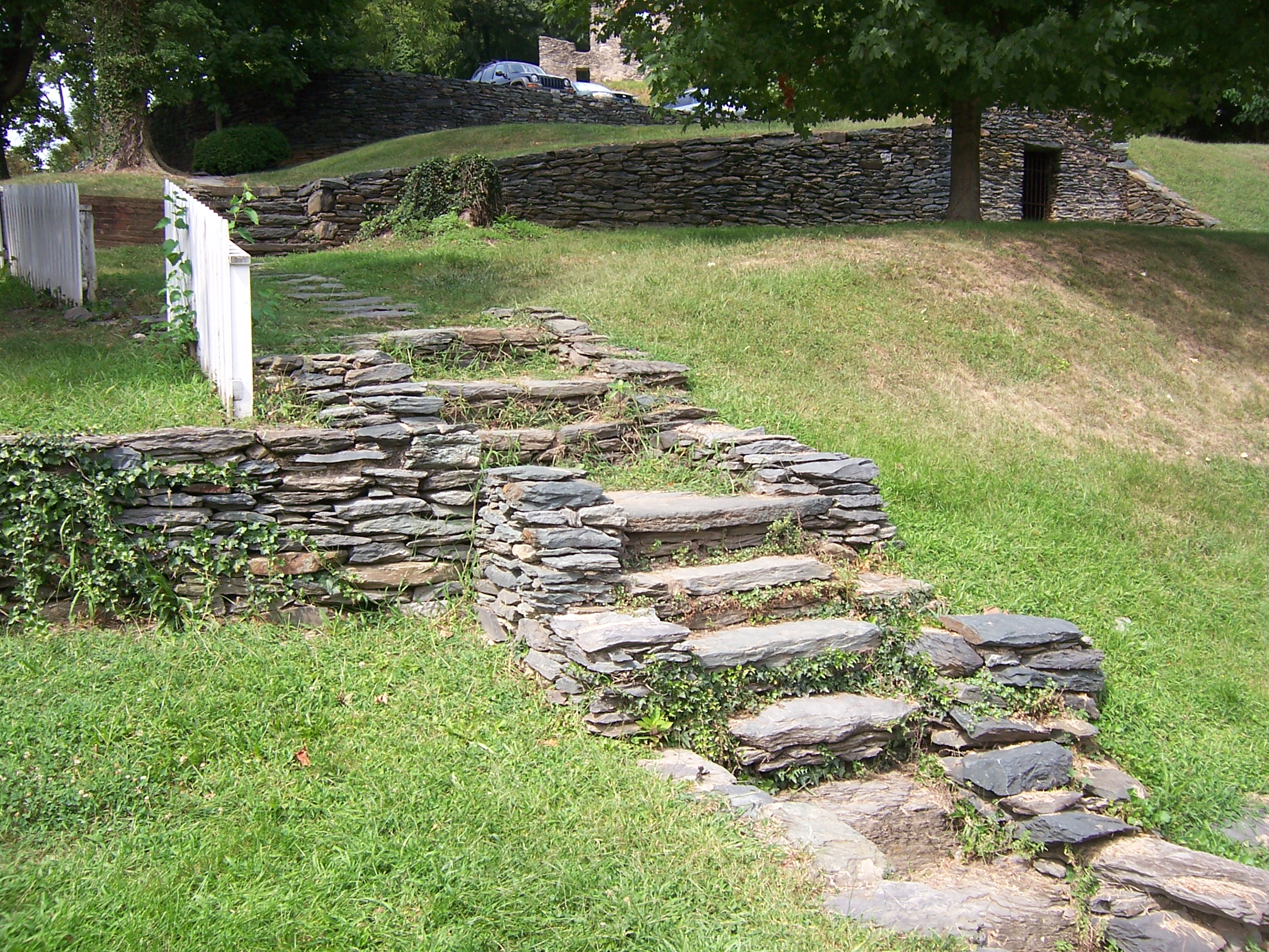 View of the Wager Garden Wall steps and stone masonry features, August, 2008. Lower Town, HAFE Park.