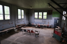 Interior of the vocational education area of the Marion Rosenwald School with large open area, desks and chairs, and windows.