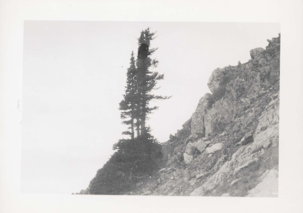Scenery – Specimen Mountain. Negative#: 824. Location: Poudre Lake, Rocky Mountain National Park. Location of negative: Region Four Headquarters. [This information comes from the reverse of the envelope for this negative number.].