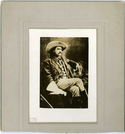 LIBI_00030_00691; A photograph, mounted on card, depicting Luther Kelley, Yellowstone scout, seated with white gauntleted glove on right hand; produced by D. F. Barry, on unknown date. Bottom of mount is torn.; print, photographic [mounted on card]; Courtesy of the National Park Service, Little Bighorn Battlefield National Monument, LIBI_00030_00691, D. F. Barry, "Yellowstone (Luther) Kelley in Large Hat and Gauntleted Glove," date unknown
