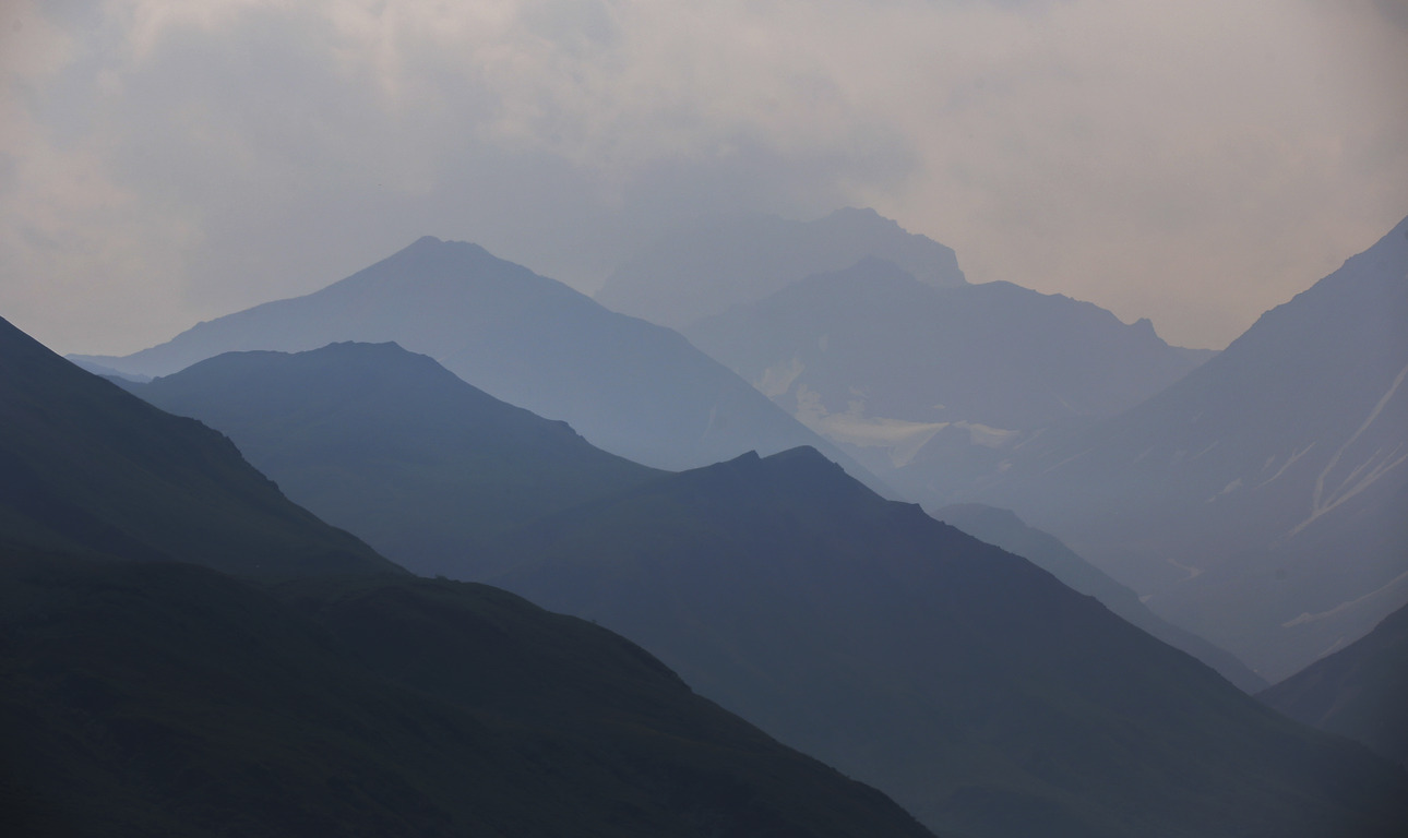 The Toklat rest stop as seen on Friday, July 14, 2017. The mountains are covered in a thick haze from recent wildfires north of Fairbanks.