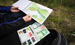 Artist Trine Bumiller paints in the field.