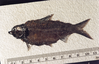 The deep-bodied Knightia alta was more common in contemporary Lake Gosiute than in Fossil Lake. Specimen is approximately 11 cm long. Catalog number FOBU13444.