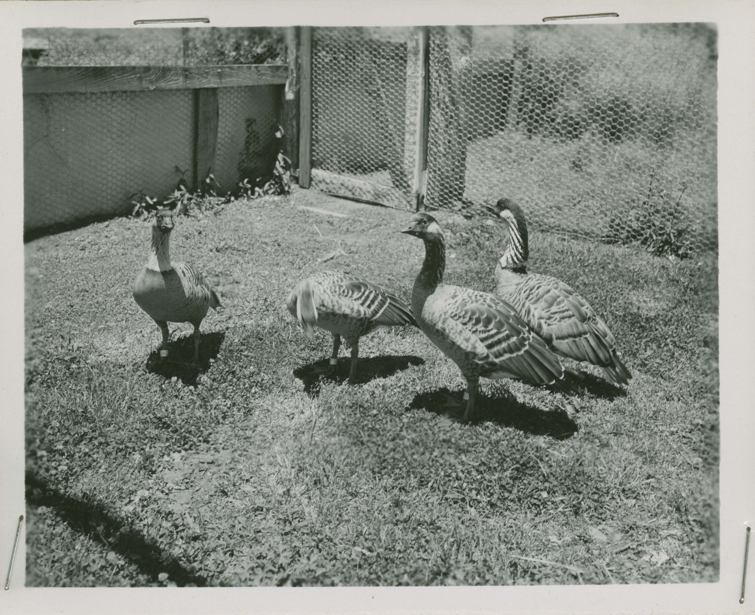 Hawaiian goose or nene. Locality: Pohakuloa Rearing Pens, Humu'ula Saddle, Hawaii. No negative on file.