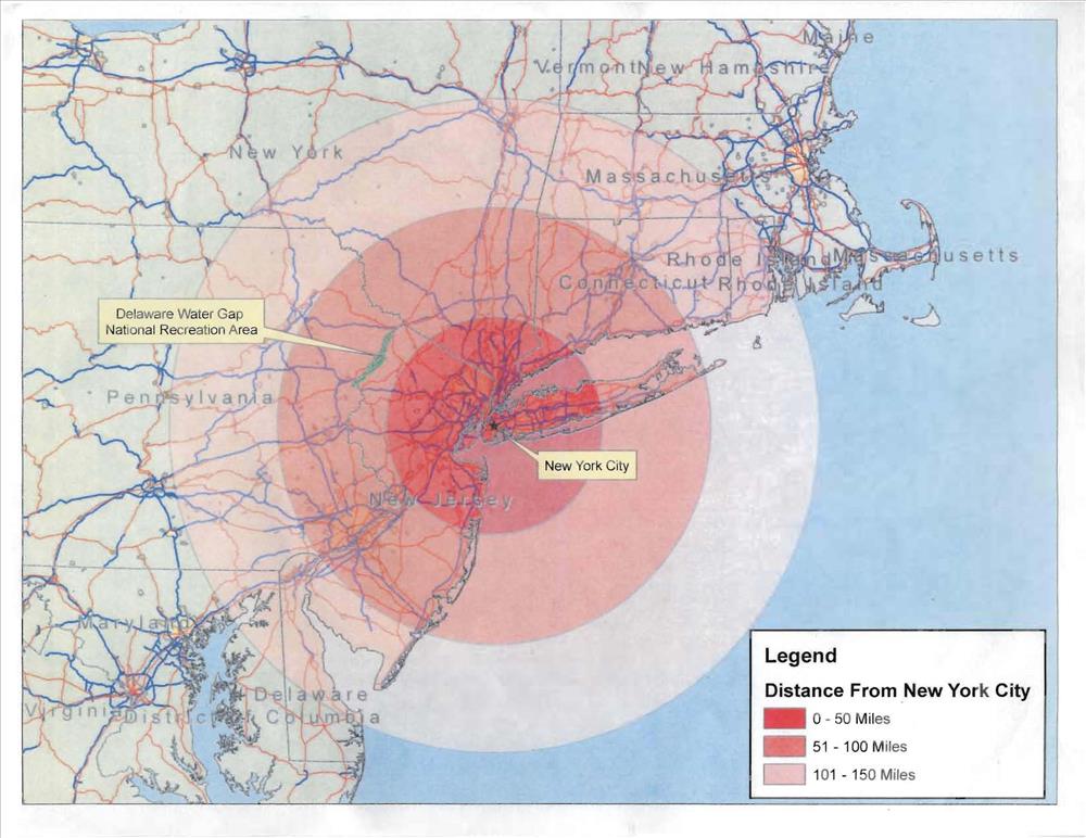 Viscinity of Delaware Water Gap NRA to New York City, New York