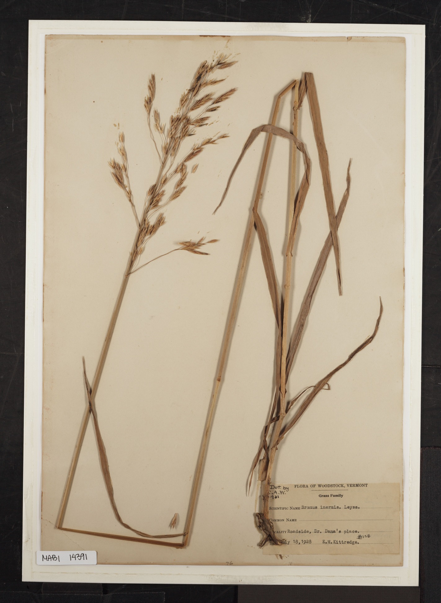 Preserved Specimen On A3 Paper With A Printed Label Identifying It In The Bottom Right Corner. The Paper Is Mounted On A Larger Cardboard And Covered With Plastic Which Is Sealed To The Board. There Is One Sample, The Stem Extending From The Roots To Seeds And Leaves. It Is Folded Over Three Times To Fit The Page. The Bottom Section Extends Over The Label.
