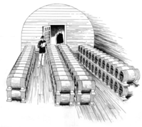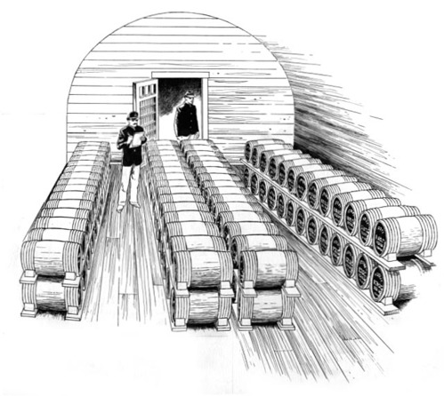Soldiers working inside a powder magazine.