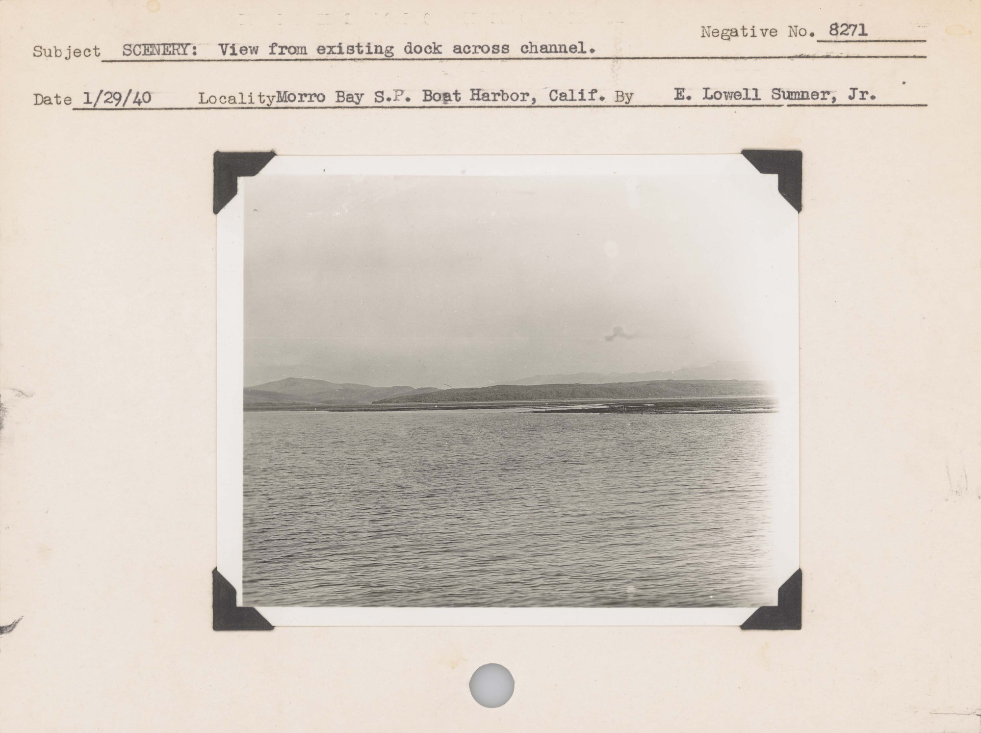 Scenery – View from existing dock across channel. Negative #: 8271. Locality: Morro Bay State Park Boat Harbor, California.