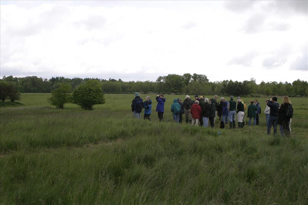 Cuyahoga Valley National Park is designated an Important Bird Area by the Audubon Society of Ohio, in part because of the restored grasslands at the site of the former Richfield Coliseum. A property once known for its sports/concert arena is now managed by the National Park Service as a grassland for rare birds. Cuyahoga Valley National Park offers year-round programs on bird watching. || Visitors bird watch with Park Ranger Paul Motts at an interpretive program called After the Coliseum in 2006. The program was an opportunity for local residents to learn how the park intends to manage this newly restored property.