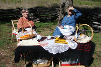 Park volunteers dressed in period clothing knitting at Prairie Day.