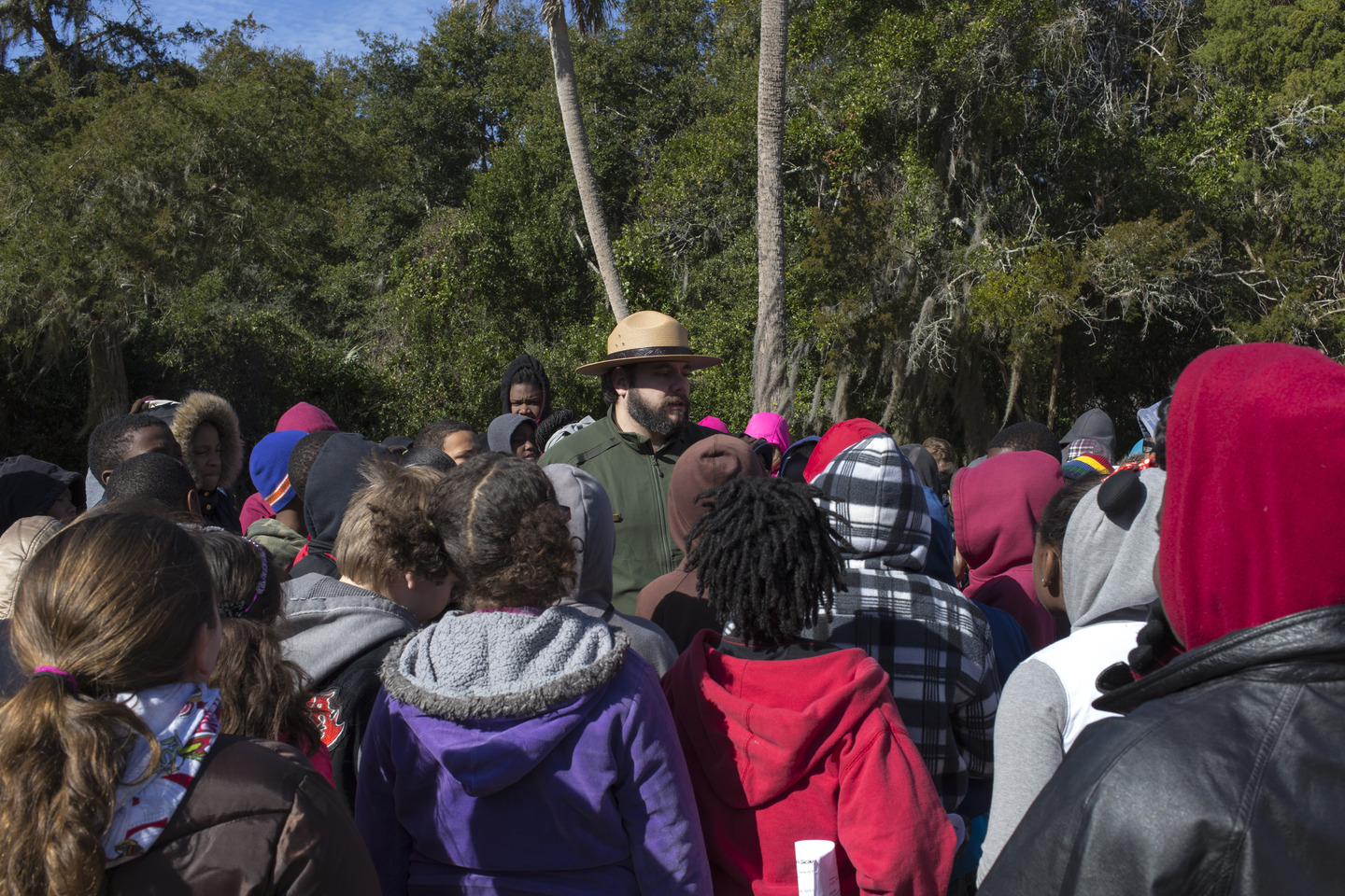 Students surround the Ranger to hear what he has to say.