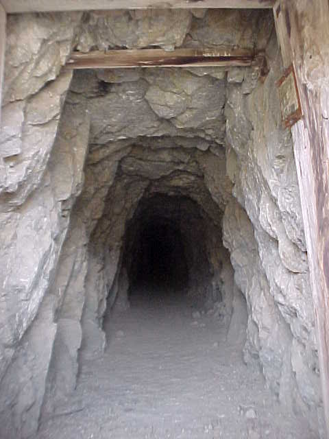 Open shafts and adits at Paymaster Mine, an abandoned gold mine in July 2004.