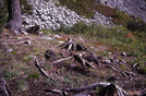 Cascade Pass, Revegetation Site TH10, revegetation monitoring photograph. Text on slide frame reads: "REV/CAS/TH10-6, #10, 2005: best guess at date in upper corner - (19)85." Undated, processed September 1985. (North Cascades NPS Complex Museum Collection, NOCA.0013 Revegetation Program Records, Series XI: Photographs, File 001 - Cascade Pass Vicinity Impacts and Revegetation Sites, 1970-2004)