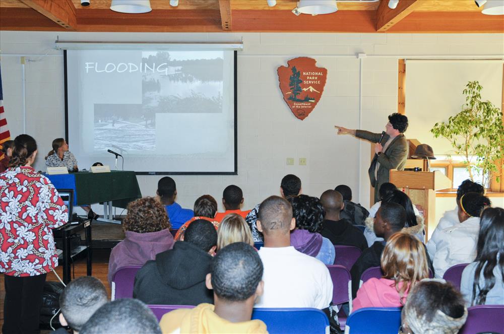 Throughout the Level 2 curriculum, middle school students have been learning about low-impact development and applying it to planning a residential housing development on specific pieces of land bordering. At the culminating class, CVEEC staff play different roles at a Planning Commission meeting and student groups present their site development proposals. || The Cuyahoga Valley Environmental Education Center's residential program provides fourth through eighth grade classes an overnight educational experience that integrates science, nature study, environmental issues, and the arts. Students learn natural history and the concepts of watershed, biodiversity, and habitat. In addition, environmental issues and the process of environmental decision-making are explored. The curriculum is designed to meet state standards and teach proficiency skills, especially in science and social studies.