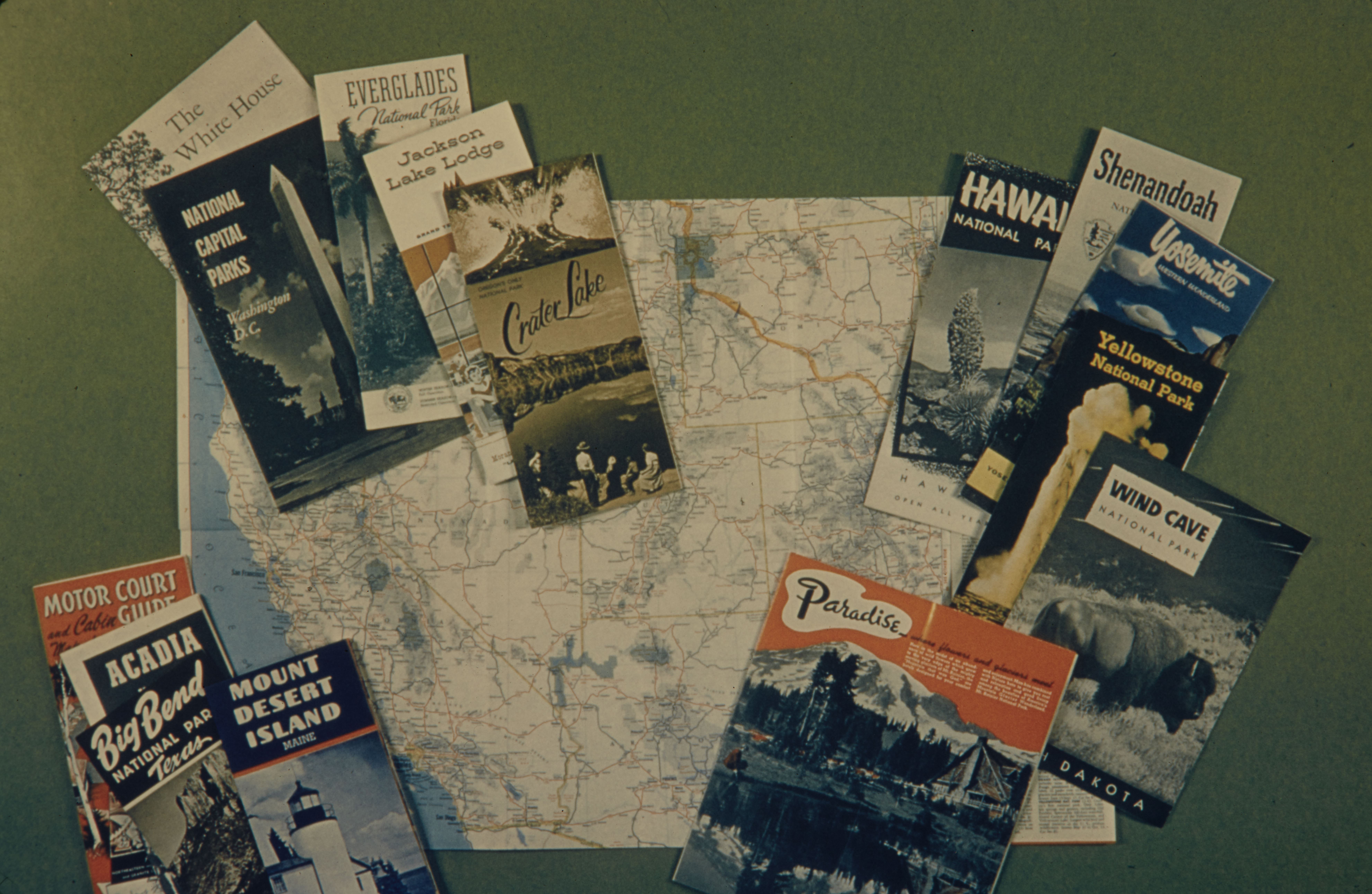 Map of southwest United States with park pamphlets laid on top of it.