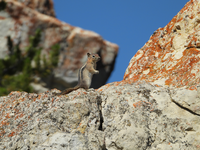 Golden mantle ground squirrels look very similar to chipmunks, but chipmunks have stripes on their face, while golden mantle ground squirrels have them only on their back.
