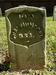 Front of historic upright marble headstone with recessed shield with recessed lettering face.