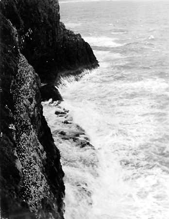 Part of the colony of more than 4,000 California Murres which is visible at Cape Lookout, Olympic National Park. Even when isolated and inaccessible, not many such cliffs have shelves upon which the birds can rest. Only one comparable colony remains on the entire West Coast.