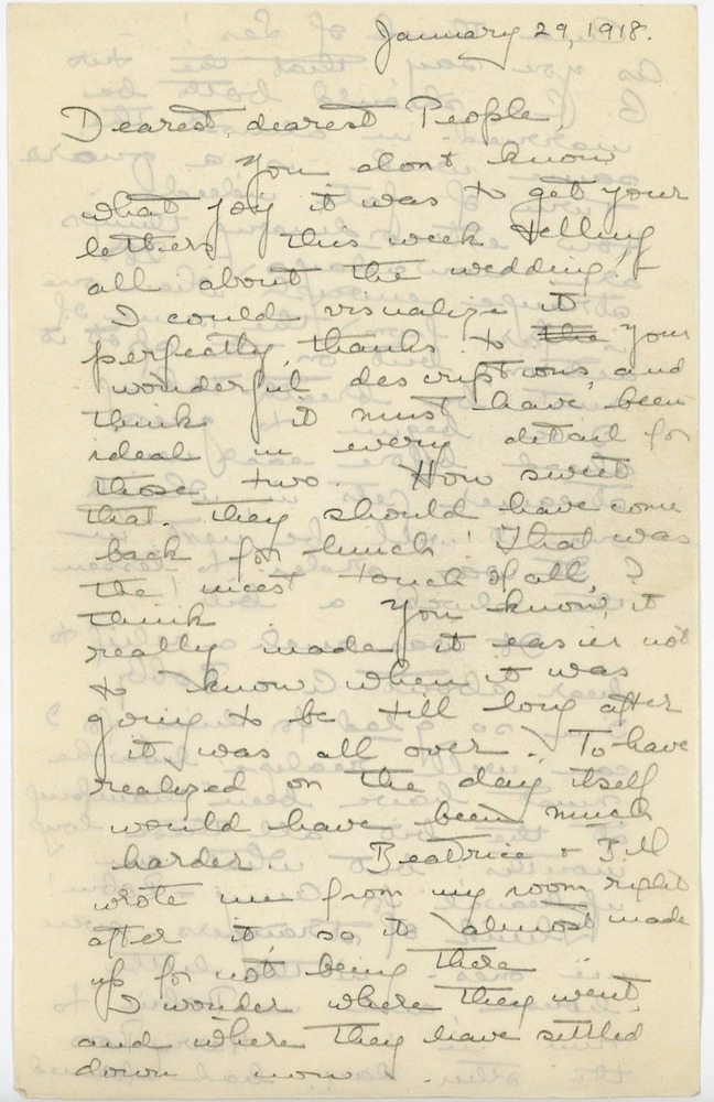 Erica (Thorp) de Berry to Thorp family, 29 January 1918