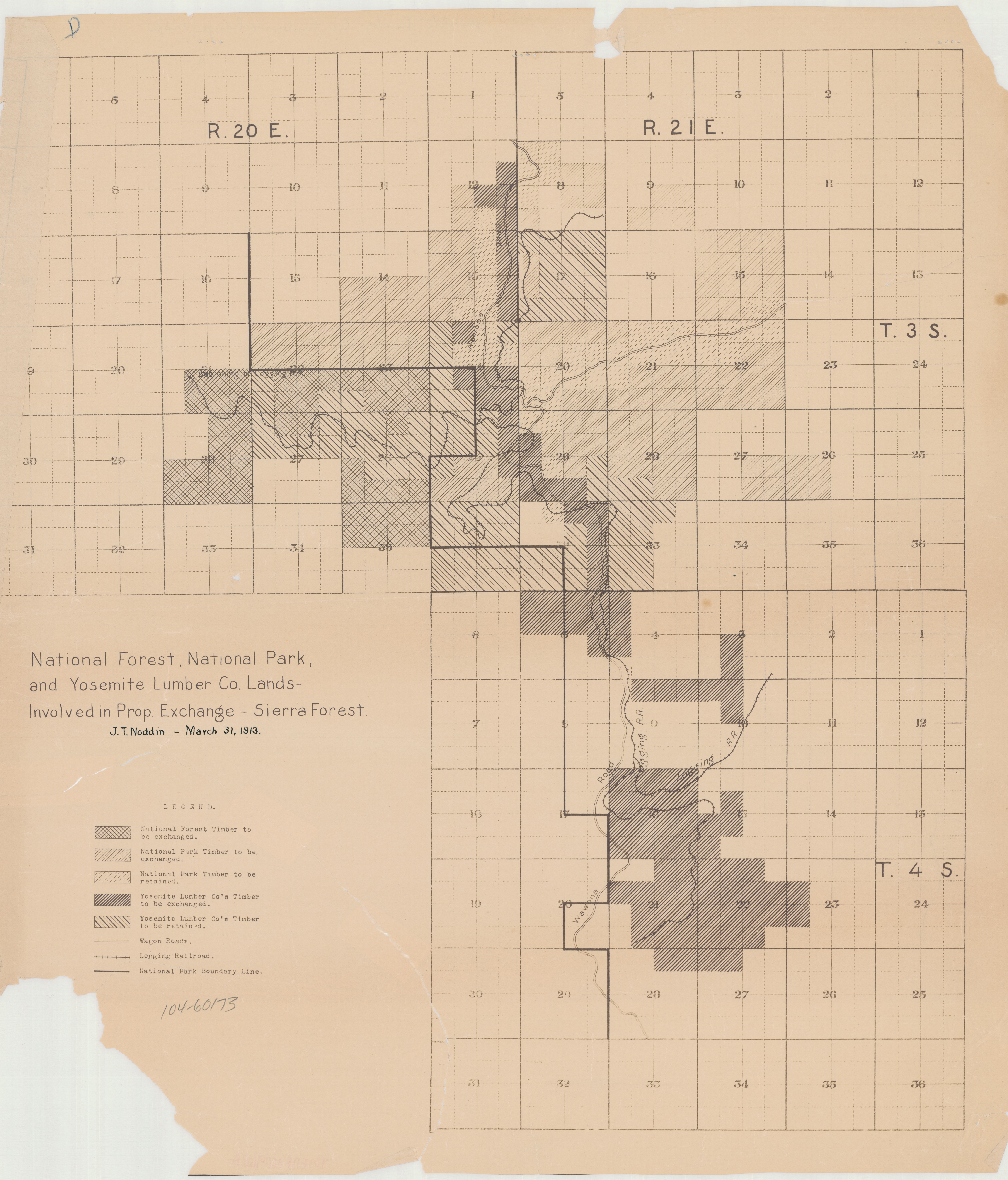 Grid map showing lands to be exchanged and retained along the Wawona Road