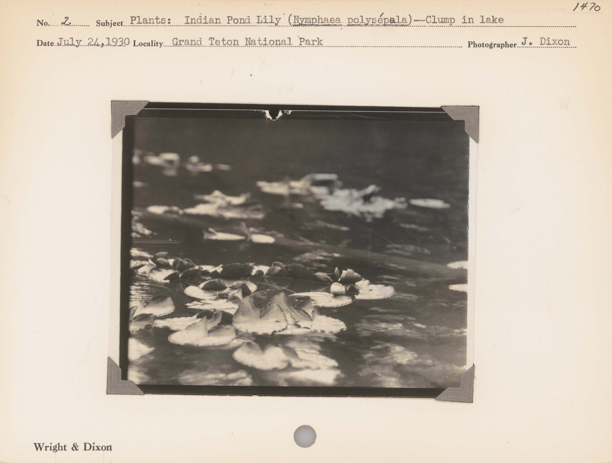 Plants--Indian Pond Lily--(Nymphaea polysepala)--Clump in lake. Locality: Grand Teton National Park. Negative #: 1470
